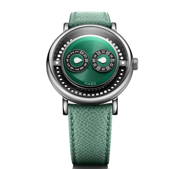 用一根隐藏式集成杠杆取代了传统表冠让外观呈现出别样的视觉效果。