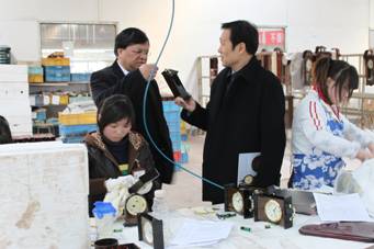 下午田民裕理事长来到了从事木钟及木制品生产的港资企业上海青雅实业有限公司。叶振强董事长陪同田民裕理事长参观了工厂,田民裕理事长边参观变询问了青雅公司情况,叶振强董事长介绍了这几年青雅公司的发展情况,企业主要以外贸为主,同时代理经营美国最大的时钟品牌霍华德.米勒的产品。由于出口订单多,在金融危机中影响不大,公司每年有1000多万美金的出口,近几年开始拓展国内市场并取得了不错业绩。