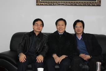 田民裕理事长与上海靖和实业有限公司王新和总经理(右)刘华斌技术总监(左)合影