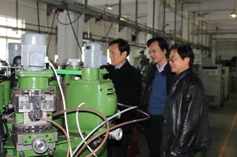 倪海明总经理陪同田民裕理事长参观上海表业有限公司生产车间