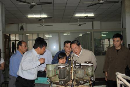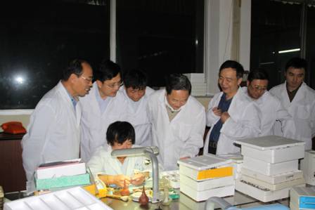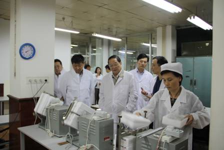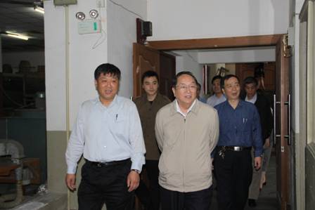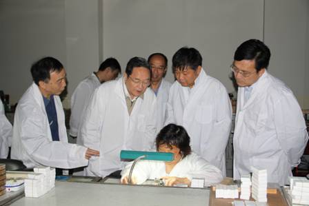 俞正声书记在董国璋总经理陪同下参观了生产车间,实地考察了上海牌手表的生产过程,详细询问了机芯夹板的加工和机芯的装配过程。