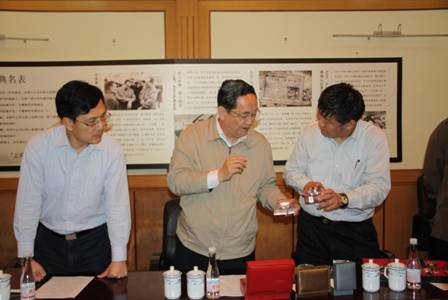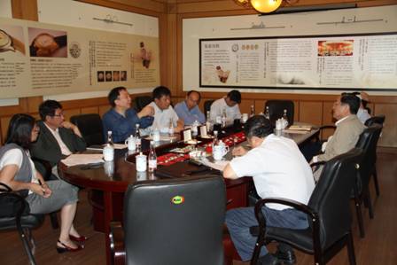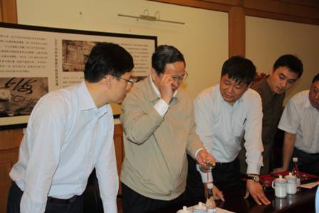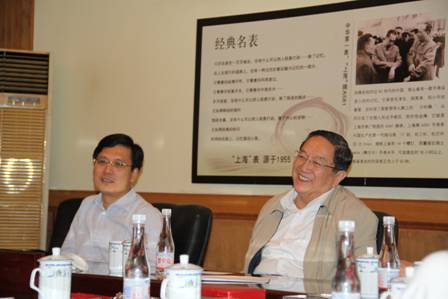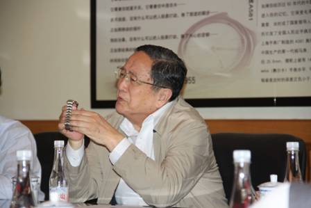 随后,俞书记来到了会议室,听取了董国璋总经理关于上海牌手表发展的情况汇报。董国璋简要地汇报了上海牌手表的历史沿革,介绍了上海牌手表在80年代之前曾经的辉煌,90年代的衰落,2000年以后的重振过程。现在,上海牌手表在坚持创新,加快产品开发,增强错位发展,拓展传统品牌,适应国际潮流,形成了四大系列产品:多针机械表系列、多针多历机械表系列、多功能计时机械表系列、陀飞轮机械表系列。其中,计时机械表系列(计时码表)、陀飞轮机械表系列处于国内领先地位。