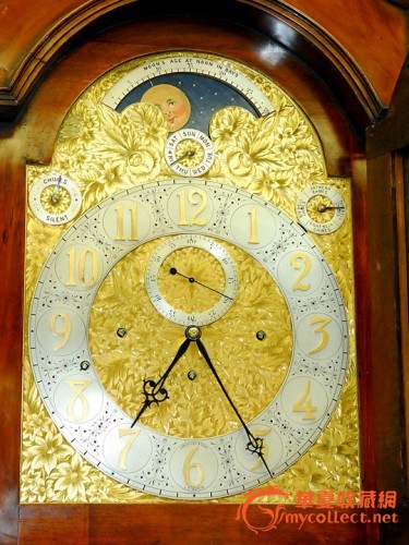 这是集排铃音乐结合滚动音乐的典范,是外在美结合内在美极具收藏价值的罕见古钟。英国排铃古钟基本的特征和功能它都具备了,每刻10铃工作,每3小时14槌敲响,整点有20CM的超大音铃和滚动音乐的配合,其音乐效果可想而知。四个附属钟盘,日历、月相……