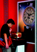 展馆最内侧的一个展台内,静静地躺着一块微微发黄的老手表,表面上一行细细的字———“第一次试制样品”表明了它曾经的辉煌,这是1955年9月26日上海试制成功的第一只国产长三针细马手表。虽然已经走过了半个世纪,但是它那根跃动着的带有红色箭头的秒针,让人感觉到它活力依旧。
