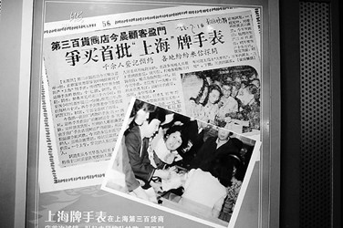 在展馆中,记者看到了一款堪称制作工艺世界一流的上海牌陀飞轮精品表。它精巧细致到无与伦比的外表让人叹为观止,不过它的价格也令人咋舌———10万元人民币。据上海表业有限公司工作人员介绍,这款专为上海牌表50华诞制作的珍藏版手表全球限量发行50只,目前已被预订了10余只。据介绍,此前刚有一位马上就要返程的外地商人愿意用现金现场付款买下这只样表,遗憾的是,样表概不出售。 来源:新闻午报 “1955-2005从时间上走来———上海牌手表50周年回顾展”昨天在上海市城市规划馆落下帷幕。从中国人自己试制的第一块细马机械手表,到当今世界上制作工艺最先进的陀飞轮精品表,“上海”牌这块响当当的老牌子,在向市民述说它50年风雨历程的同时,也把人们带回到了那个全国老百姓都以戴上海牌手表、骑永久牌自行车、听红灯牌收音机为荣的年代。