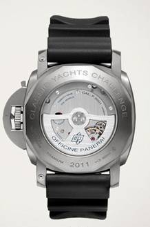 一如过去多年的传统,Officine Panerai每年都为巡回赛特别创作一款特别限量版腕表,作为优胜者的奖品,2011年推出的是Luminor Submersible 1950 Regatta 3 Days GMT Automatic Titanio – 47毫米:一款专业水下腕表,防水可达30大气压(约300米),旋转表圈上有刻度计算尺可以计算潜水持续时间,手动显示第二时区。