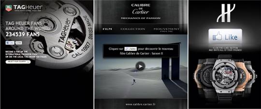 这对腕表品牌来说已经不算什么新鲜事儿了,因为几乎所有品牌在网络上都有一个官方地址,现在他们的粉丝数量已经数以万计数十万计。总之,根据2011年WorldWatchReport的研究,最负盛名的25个品牌已有超过150万的粉丝。截至2011年6月1日,其中最受欢迎的两个品牌Hublot宇舶和TAG Heuer豪雅都属于LVMH集团,他们每一个都有超过20万的粉丝。接下来是历峰集团的四个品牌 — Cartier卡地亚(150,000),IWC万国(140,000),Baume & Mercier名士(135,000)和Piaget伯爵(120,000)。只有两大独立品牌Rolex劳力士和Patek Philippe百达翡丽没有注册Facebook,至少是现在还没有。