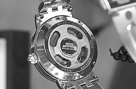 王军告诉记者,自己是在去年年初通过广告宣传买到这对“镶钻金表”的。“当时这对手表被宣传为用29克黄金、72块天然钻石组装制成,具有很强的保值增值性和收藏价值。”王军说,当时这对手表的销售商在我市某大厦内租赁了柜台转卖这款“镶钻金表”,自己感到其质量肯定有保障,于是花了16800元购买了一对“镶钻金表”,并妥善保管起来。“当时购买这款手表的人非常多,还有不少人是买来收藏或者送礼所用的。”王军表示。令王军万万没有想到的是,明明是“镶钻金表”,但在自己收藏一年后拿出来佩戴时,“金表”却露馅了。