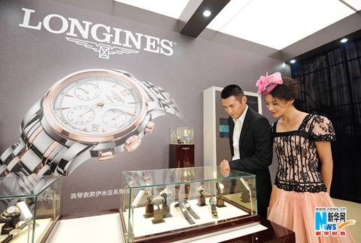 浪琴表优雅嘉宾严宽与袁姗姗欣赏浪琴表索伊米亚系列