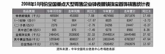2008年10月份全国重点大型零售企业钟表眼镜珠宝首饰销售统计表