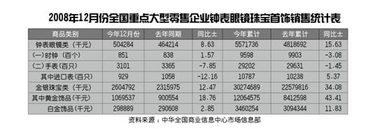 2008年12月份全国重点大型零售企业钟表眼镜珠宝首饰销售统计表