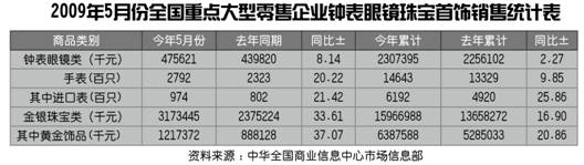 2009年5月份全国重点大型零售企业钟表眼镜珠宝首饰销售统计表