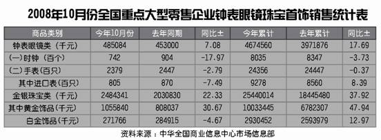 2009年10月份全国重点大型零售企业钟表眼镜珠宝首饰销售统计表