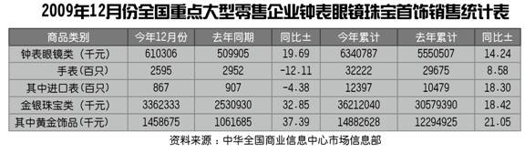 2009年12月份全国重点大型零售企业钟表眼镜珠宝首饰销售统计表