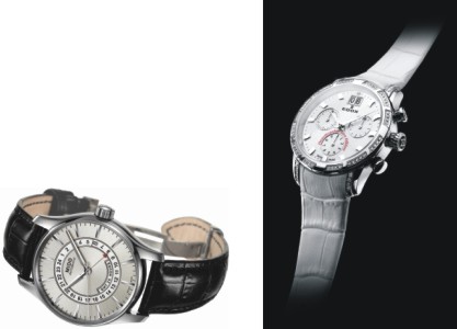 美度(左)、依度(右)推出的计时码表和世界时表,这些品牌基本是以入门级腕表产品和中端腕表作为主打产品。