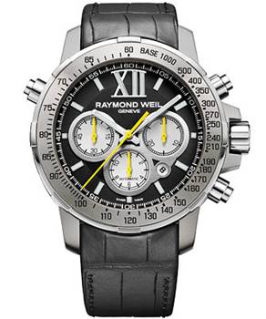 表盘颜色由深入浅,宛如循序渐进的内省过程。从黑色表链至表盘、灰色表壳至三个辅助表盘、再到黄色辅助表盘指针、计时指针、白色时标以至荧光时针和分针,这一色彩过度和谐而美妙。Raymond Weil 蕾蒙威的这一表款具有大气不凡的46毫米表壳,以及用钛合金雕琢而成的转速测量表圈,创造了超越时间和潮流的永恒。