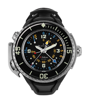 独创的5分钟出水倒数计时显示,方便潜水员准确测量减压时间,位于表盘10点钟位置,这是表盘上唯一一个采用偏离中心指针的计数器 ,而所有其它功能 - 小时,分钟,秒和深度计三个独立指针,集中于表盘中央,色彩鲜明且清晰易读。