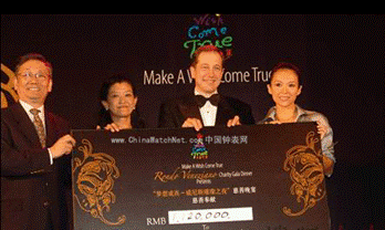 对于这件当晚最后的拍品,竞争尤为激烈。最终以32万元人民币的价格被现场的一位女士拍得。为表示感谢,章子怡小姐亲手为其佩带手表,现场洋溢着浓烈的慈爱之情。此款手表的拍卖款项以章子怡基金的名义捐献给上海慈善基金会。