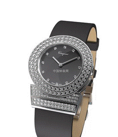 此款手表为菲拉格慕女式腕表Gancino系列,以其优雅婉约的设计与玲珑娇小的线条而别具一格。表壳和表扣的外形让人不禁联想起菲拉格慕闻名遐迩的Gancino标志。该表采用石英机芯和奢华材质,以及蓝宝石水晶玻璃表镜、不绣钢镶钻表壳,表圈和表面镶嵌共152颗明亮型切割的钻石共计1.13克拉。市场售价为59,900元人民币。