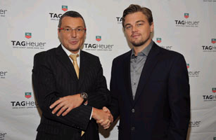 新的TAG Heuer豪雅形象代言人Leonardo DiCaprio和TAG Heuer豪雅的全球总裁兼首席执行官Jean-Christophe Babin.