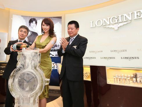 当日,浪琴表为举行盛大,浪琴表全球优雅形象大使林志玲小姐亲临旗舰店开幕庆典,展示了最新的心月系列之精钢玫瑰金版腕表,并偕同浪琴表品牌及经销商代表用香槟浇注心月系腕表冰雕,优雅致贺浪琴表钟楼旗舰店开幕。