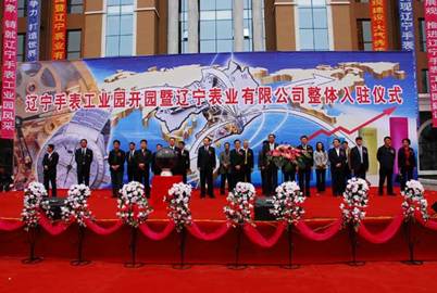 辽宁手表工业园开园暨辽宁表业有限公司整体入驻仪式昨日在新城区隆重举行。中国钟表协会理事长田民裕,省经信委主任李兵,省科技厅副厅长赵景海,市领导赵连生、李树民、王力威、回育波、苏永胜等出席开园仪式。