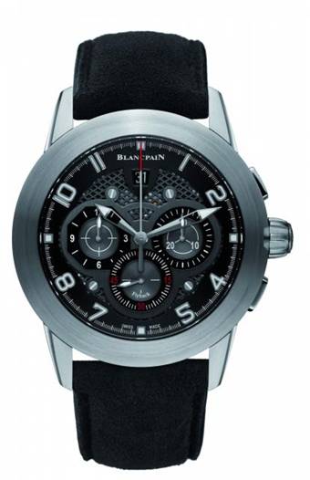 F185自动上炼机芯╱不锈钢材质/表径43.5 mm/时、分、小秒指示/飞返计时秒表功能/自动盘为赛车概念设计/蓝宝石水晶镜面、底盖/防水100 米╱宝铂Boutique专卖/限量275只。