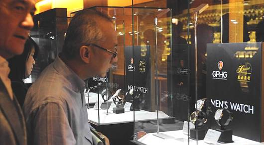 10月19日,观众在欣赏参赛作品。当日,在位于香港中环的东方表行,“日内瓦钟表大赏”参赛作品展开幕。该展览每年举办一次,旨在评选和嘉奖最优秀的时计和制表商。据悉,这是“日内瓦钟表大赏”参赛作品首次在中国展出,在香港展出结束后将移师上海。