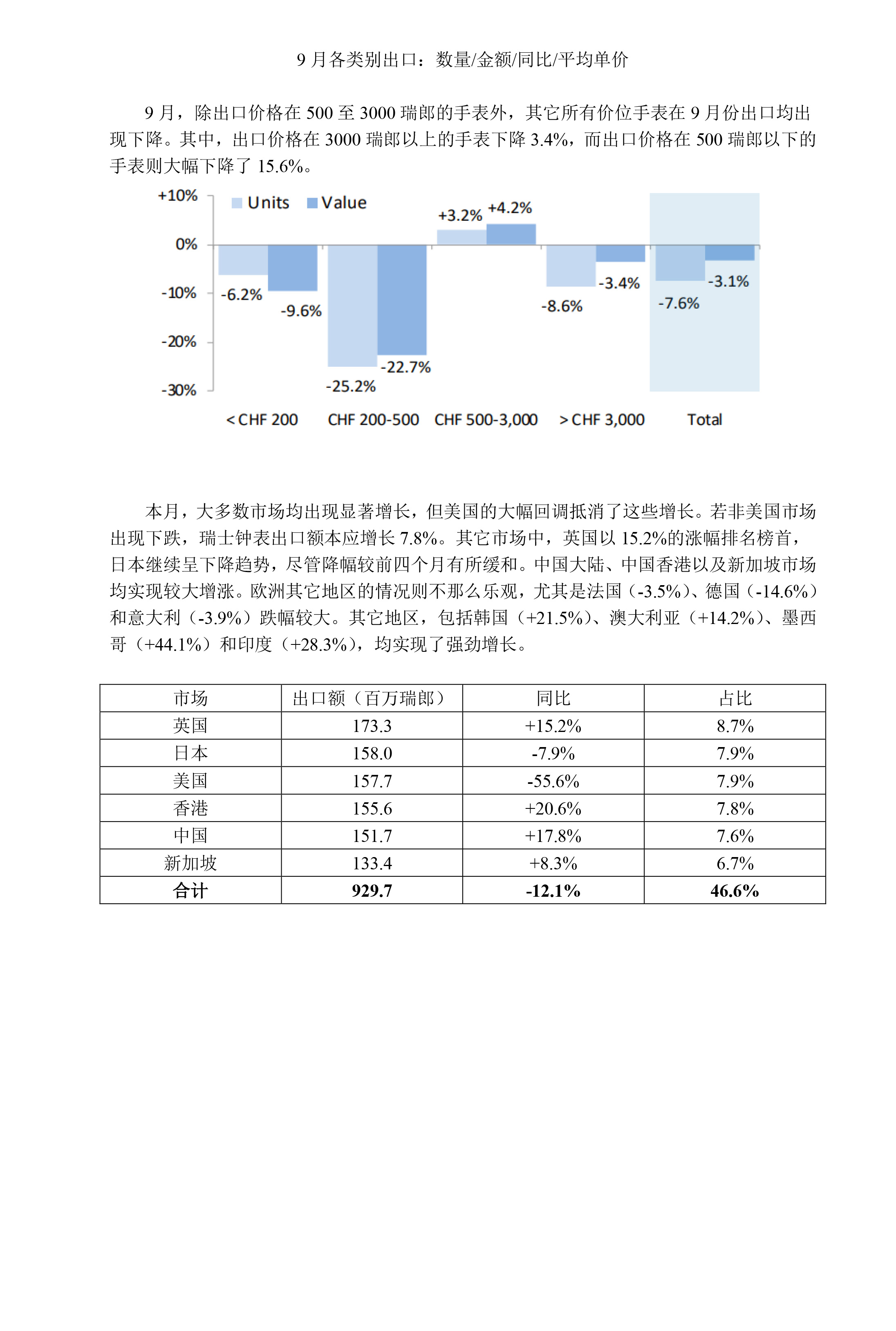 2025年9月瑞士手表月出口统计与分析