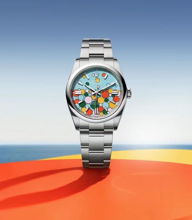 不过亮色表盘的设计更有看点,比如劳力士的多彩气泡盘蚝式恒动、带拼图图案的星期日历型36。