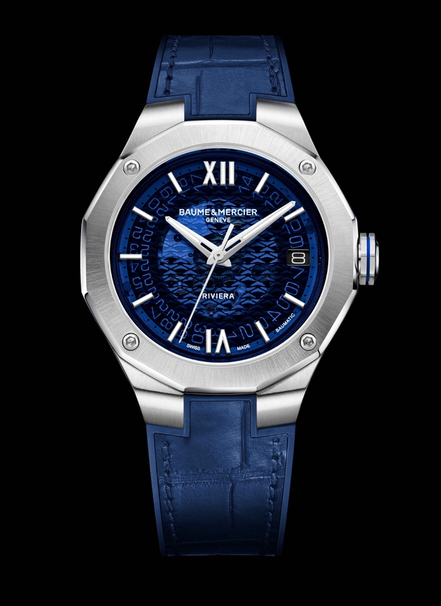 名士表新推出的这款Baumatic日历自动上链腕表,精钢表壳的外圈集合设计,搭配深蓝的表盘雕刻设计,充分演绎出运动的格调与优雅。