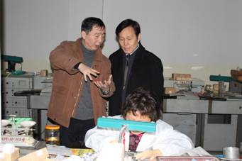 下午田民裕理事长来到了从事木钟及木制品生产的港资企业上海青雅实业有限公司。叶振强董事长陪同田民裕理事长参观了工厂,田民裕理事长边参观变询问了青雅公司情况,叶振强董事长介绍了这几年青雅公司的发展情况,企业主要以外贸为主,同时代理经营美国最大的时钟品牌霍华德.米勒的产品。由于出口订单多,在金融危机中影响不大,公司每年有1000多万美金的出口,近几年开始拓展国内市场并取得了不错业绩。