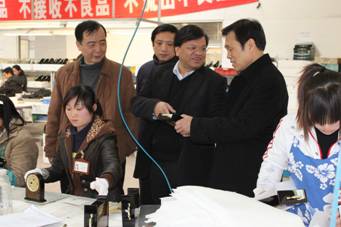 在上海表业有限公司考察时,听取了倪海明总经理汇报并参观了生产车间。田民裕理事长在听取了倪海明总经理介绍公司很抓产品开发时赞扬了上海表业这几年在机芯开发方面所做了大量工作并取得成绩,同时,也希望上海牌手表借助中国2010年上海世博会和建厂55周年之际,宣传和提升上海牌手表,为我们民族钟表崛起作出贡献。