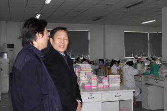 倪海明总经理陪同田民裕理事长参观上海表业有限公司生产车间