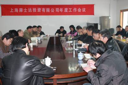 2月25日上海摩士达投资有限公司(原上海钟表有限公司)召开了2011年度经济工作会议。公司下属十多家企业的书记、总经理参加了本次工作会议。会议主要回顾总结过去一年公司党政工作所取得的成绩和不足,布置了2011年公司的党政工作要求。会议要求各级企业领导继续发扬所取得的成绩,在新的一年里,聚重点,求实效,谋发展,保增长,扎实推进物业和现代服务业发展;全面推进手表制造业持续发展;着力推进眼镜板块全面发展;全力推进调整企业基本到位;切实推进综合管理水平上台阶;营造和谐、维系稳定。