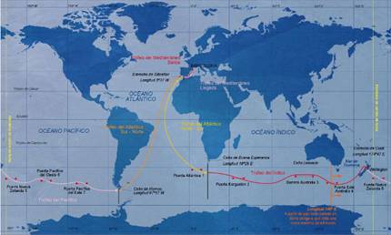 航行过程中通过了三个海域:好望角,Leeuwin and Horn - 以及库克海峡,而南极在帆船的右舷。这两个世界顶级的船员,Jean-Pierre Dick克和Loïck Peyron,曾在2005年一起赢得了Transat Jacques Vabre。