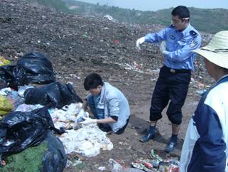 | 点上一支烟,民警李胜奇和魏正希望烟味能熏走蚊虫,遮住刺鼻的臭味。站在“半个篮球场”大的垃圾堆中,他俩不知道能否帮江苏游客找回那块价值20余万元的“伯爵”铂金手表。