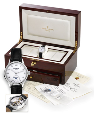 随着收藏家们对Patek Philippe百达翡丽钟表日益浓厚的兴趣,我们很高兴在此次拍卖会上提供一系列Patek Philippe百达翡丽现代奢华腕表,其中Patek Philippe Ref. 3939HP无疑将是最引人注目的一件拍品。这枚铂金三问腕表精美极致且非常罕见,具备一分钟陀飞轮和Patek Philippe百达翡丽铂金表扣,于2004年11月售出。附有原包装盒、原产地证书、COSC认证证书和一个额外的底盖。