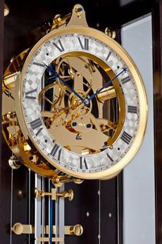 此款精美时钟的开发过程结合了德国钟表匠数十年来从制作报时时钟积累的经验和关于物理可行性的基本钟表知识。